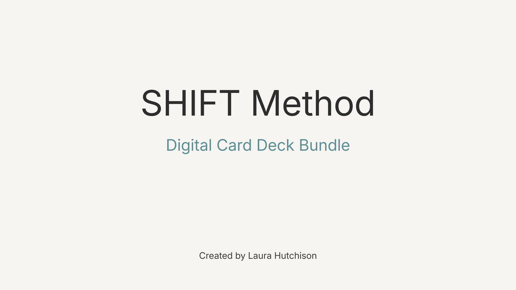 A complete digital collection of all three SHIFT Method card decks — PAUSE, SHIFT, and DECIDE — designed to support different internal states and moments.
